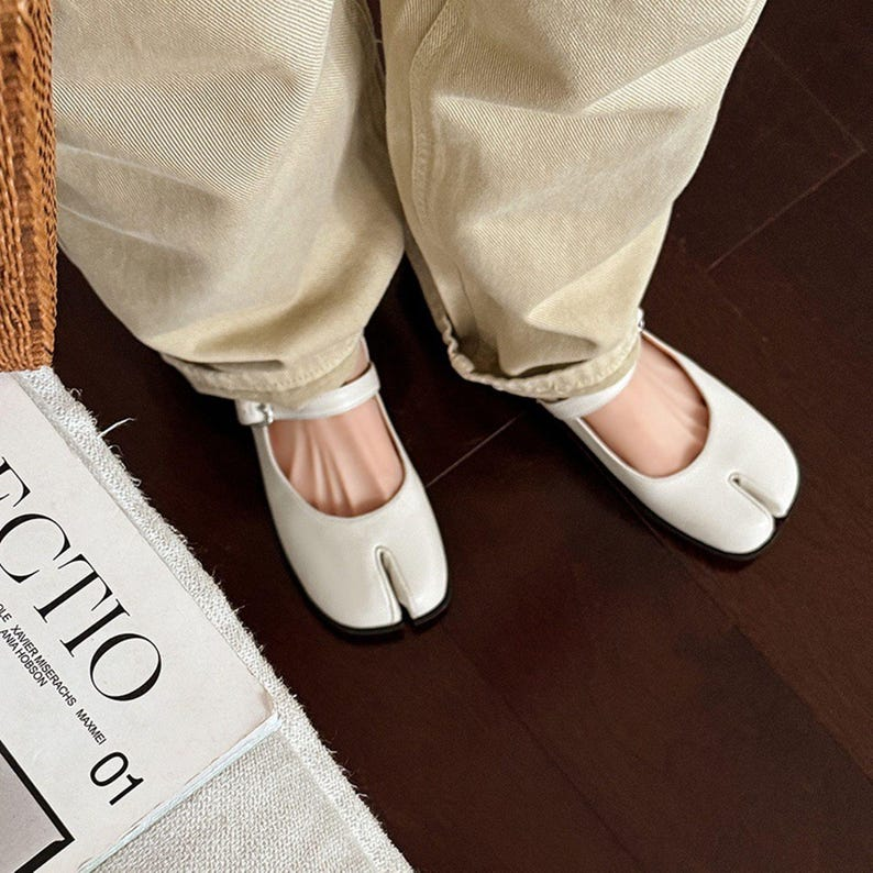 Women’s Beige Leather Mary Jane Flats